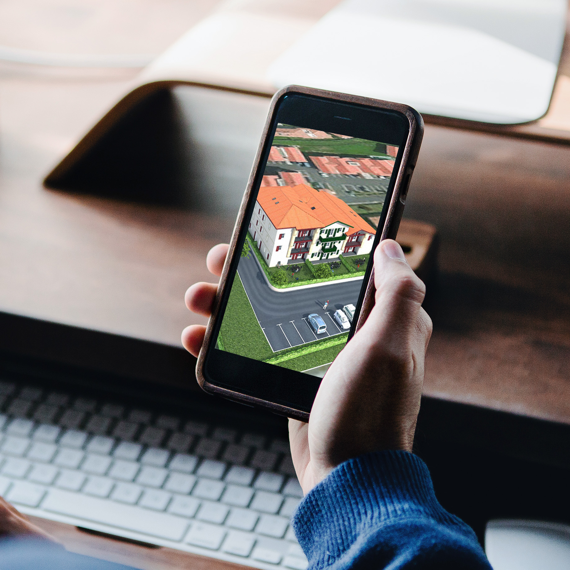 si vous consultez notre site internet depuis un ordinateur PC ou MAC , cliquez sur l’onglet Visite 3D présent sur cette page ( sous la carte de localisation)
