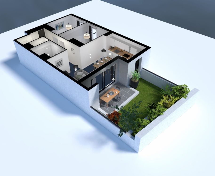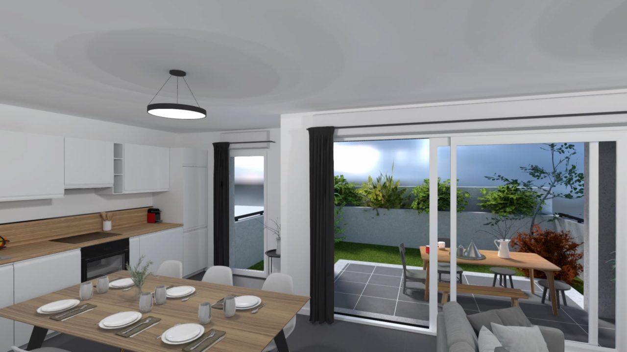 Les éléments d’ameublement ,de décoration ainsi que les mobiliers et équipement de cuisine exposés dans les images et maquettes 3D virtuelles des biens immobiliers proposés à la vente sur cette page vous sont présentés à seul titre d’illustration