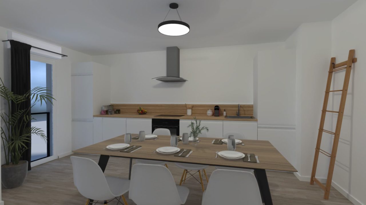 Les éléments d’ameublement ,de décoration ainsi que les mobiliers et équipement de cuisine exposés dans les images et maquettes 3D virtuelles des biens immobiliers proposés à la vente sur cette page vous sont présentés à seul titre d’illustration